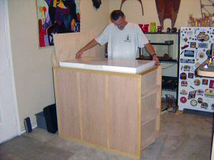 Cutting the front bar top edge. This should give it a good 60's style look to match the tower.